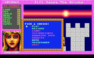 Jill of the Jungle is a platform sidescroller which was released during the same period as Commander Keen and Duke Nukem. Players play as an Amazon woman who can use various types of weapons and enhancements as she progresses through levels slaying monsters and finding keys. The first episode in the trilogy (Jill of the Jungle) contains 15 playable levels, including a bonus level, each of which can be entered from an overworld resembling another level. The second episode (Jill of the Jungle: Jill Goes Underground) )uses 20 sequential levels without an overworld. This third episode's overworld is a top-down perspective, changing to the traditional platformer style when entering one of the 15 levels. (Wikipedia)