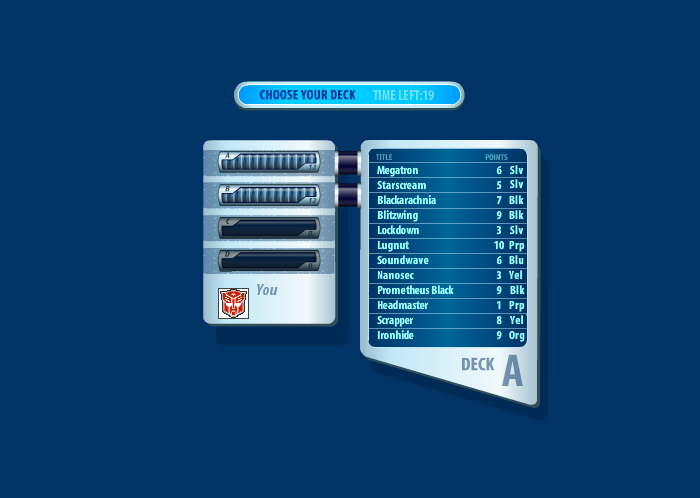 Play as your favorite Transformers in a challenging card battle! Pick Autobots or Decepticons and slug it out in Transformers: Animated Action Packs. If you're looking for awesome Transformers games and other free games online, Cartoon Network is the only place to go.